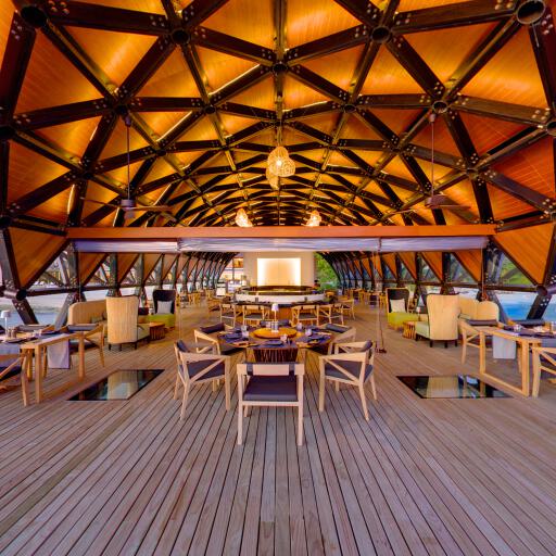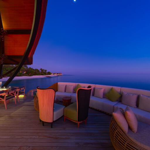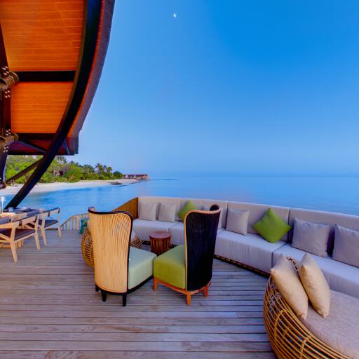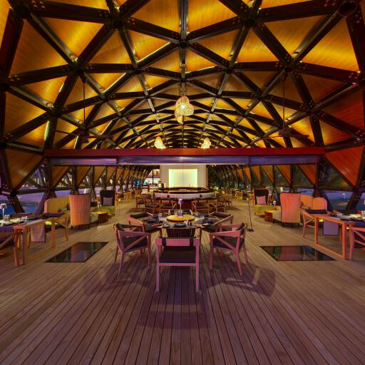 This dynamic 360 photograph showcases The Pearl restaurant at the Westin Miriandhoo Resort during day and nighttime. Enjoy looking around in 360 to discover the different scenarios