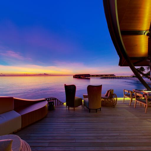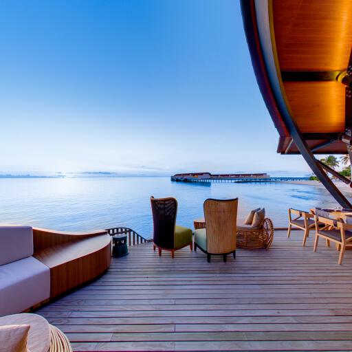 This dynamic 360 photograph showcases The Pearl restaurant at the Westin Miriandhoo Resort during day and nighttime. Enjoy looking around in 360 to discover the different scenarios